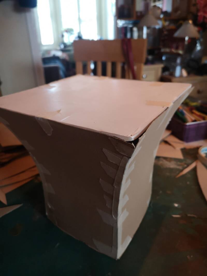 The teabag paper for the paper mâché was left over from the Westgate project, but you could use good quality paper towels or the brown packing paper you get in Amazon boxes. I laminate the areas with several layers, especially the seams and joints. The more layers the stronger it becomes.